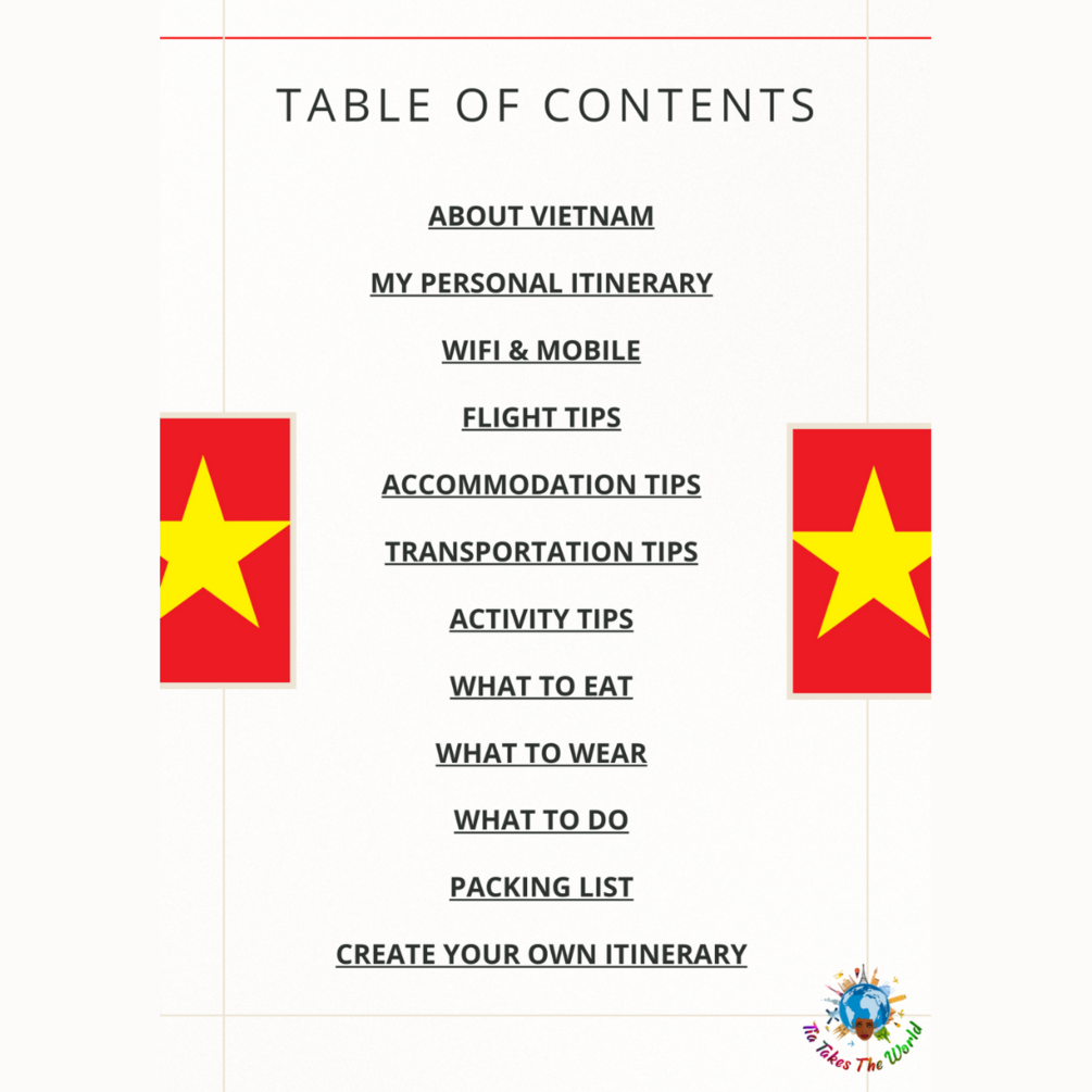 With detailed reviews, insider tips, and a user-friendly interface, The Ultimate Vietnam Travel Guide, by content creator Tia Takes The World, makes it easy to plan your Vietnam adventure. Save time and hassle with my personal expertly crafted itinerary, ensuring that you see many of Vietnam's highlights in the most efficient way possible.